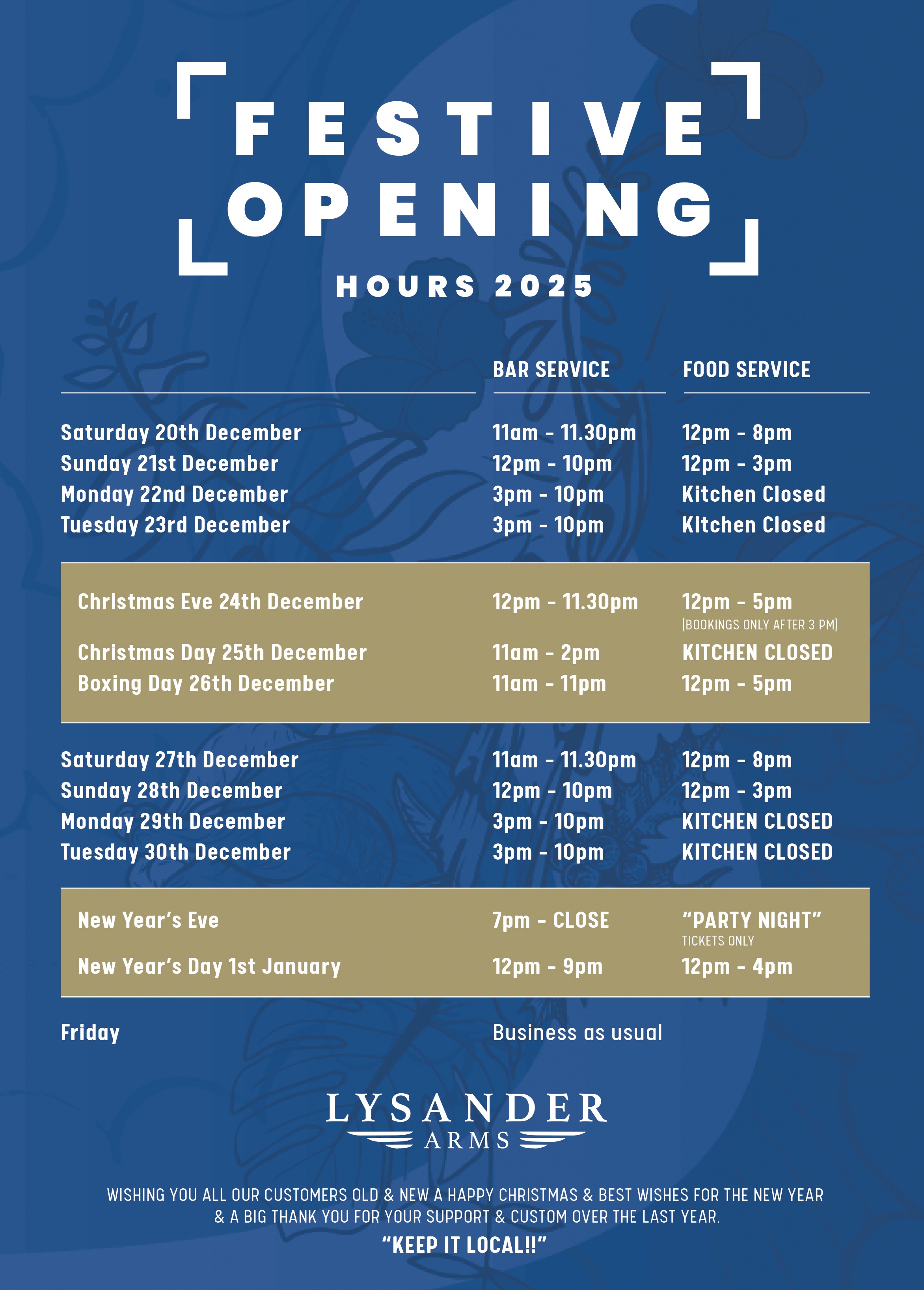Wishing you all a Happy Christmas & best wishes for the New year a big thank you for your support & custom over the last year “Keep it Local!!”